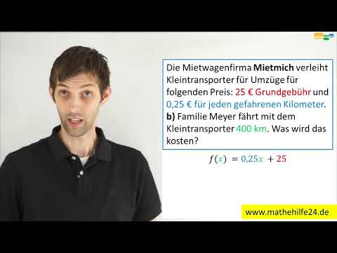 Mietmich Com }}- Die Mietwagenfirma Mietmich verleiht Kleintransporter für Umzüge für folgenden Preis: 25 € Grundgebühr und 0,25 € für jeden gefahrenen Kilometer. a) Stelle ...